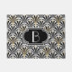 La reproduction de Digitals d'un classique, tapis de porte de motif de fan d'art déco avec le monogramme - noircissez sur le blanc, embelli avec de l'or