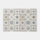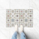 Paillasson / tapis avec une série de neuf (9) carreaux de style espagnol différents dans un motif de mosaïque de couleur neutre.