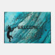 Notes musicales Le rocher turquoise du sud-ouest de Kokopelli avec des veines dorées. Southwestern Style Native American Doormat Music. Combinaison de couleur turquoise turquoise vive. Les cultures amérindiennes. Attribué à des aliens anciens ou à l'art tribal et inspiré de dessins rupestres et rupestres. Customisez votre style de tapis de porte de style sud-ouest amérindien. Super idée cadeau. Vous pouvez ajouter un texte de bienvenue ou de message à votre goût.