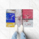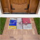 C'est un tapis de porte unique. Une texture de bois grinçant avec des noeuds, des serpents, des têtes de clous et pelé de la vieille peinture. Dans les jours d'antan, certaines parties de cette surface ont été peintes en rouge, bleu et jaune. Texte personnalisable DE STIJL sur le tapis. Pour déplacer le texte, il suffit d'utiliser le bouton PERSONNALISER pour modifier le type de police et la couleur. Choisissez une autre police dans le menu déroulant à droite du bouton "Modifier le texte". Amusez-vous et soyez heureux !