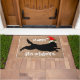 Noël howlidays drôles golden retriever ön a burlap doormat. Un mignon tapis design unique, chien noir portant chapeau santa allongé sur burlap, regardez mignon pour les amoureux de les chiens.