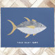 Amusant thon avec un sourire gais, sur un arrière - plan bleu marine. Art original de Nic Squirrell. Changez le nom ou le texte du bateau pour personnaliser.