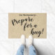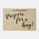 Bienvenue à vos invités avec cette typographie de script amusant design de tapis de porte rustique personnalisée avec un nom et "Préparez-vous pour un câlin" message. Remplissez le champ de texte avec un nom de famille, supprimez le nom ou cliquez sur personnaliser pour sélectionner le style, la taille et la couleur de police que vous préférez.