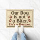 Notre chien n'est pas un biter. Il est un humper. Conception drôle de citation de chien. Chien humoristique indiquant pour des propriétaires de chien. En texte brun audacieux avec des empreintes de pattes.