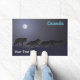 Une nuit d'hiver froide, cruelle, illuminée par la lune. Un meute de loups affamé chasse pour rester en vie. Le texte "Canada" apparaît également en bleu brillant. Ajoutez votre propre texte supplémentaire.