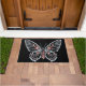Rug en pavillons en pierre à bijoux en diamants en strass blanc rouge. Bienvenue papillon mousseux bling Mat Décor maison. Des bijoux multicolores dessinés à la main ornent un papillon en forme d'arrière - plan noir. Porte avant ou arrière ou tapis de cuisine, Customisez votre texte, couleur, style sur votre tapis papillon bijoux pour correspondre à votre goût. Note : les strass ne sont pas réels, c'est dessiné à la main bijoux sur papillons snap.