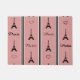 Illustration de Paris avec décoration de la Tour Eiffel et du coeur et design de texte de Paris sur arrière - plan rayé noir, blanc et rose