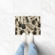 Ce design musical amusant présente une variété d'instruments de musique sur une feuille de musique vintage, arrière - plan de collage. La palette tendance noir et or fait un tapis de porte accrocheur. Les instruments présentés sont : guitare acoustique et électrique, saxophone, clarinette, trombone, trompette, corne française, flûte, violon, violoncelle et batterie. Ajoutez votre nom ou autre texte à personnaliser. Recherchez ID481 pour voir d'autres choix de couleurs et produits avec ce motif.