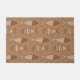 Tapis de porte dans un motif de poisson moderne et rétro, dans les tons bronze, rouille, beige, marron et blanc, sur un arrière - plan brun cacao clair