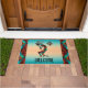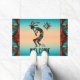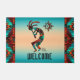 Personnalisez ce "One of a Kind" unique Kokopell Doormat Sud-Ouest! Il comprend un Kokopell sud-ouest jouant de la Flûte et dansant sous le soleil sur un Arrière - plan turquoise et orange coucher de soleil...Entouré d'une frontière sud-ouest en Turquoise, Orange et Noir!