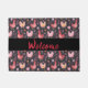 Un arrière - plan noir décoré d'un coq de ferme rétro et puis motif en rouge, rose. Exemple de texte : bienvenue