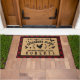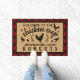 "Bienvenue au coop de poulet" texte avec 4 silhouettes de poulet (1 poule, 1 coq, 2 poulets/poussins), plus une couronne de feuilles et des oeufs. Ajoutez votre nom de famille à ce paillasson rustique chic de ferme avec un cadre rouge / noir en plastique de buffle, un faux centre de burlap et des silhouettes noires - parfait pour les fermiers et les amateurs de poulet. Cette conception est faite pour s'adapter le mieux à la taille plus grande des nattes. POUR COMMANDER LA PETITE TAILLE, visitez le site https://www.zazzle.com/chicken_coop_hen_red_buffalo_check_plaid_country_doormat-256359292576540449