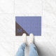 Tapis de porte bleu rétro élégant, avec un motif circulaire à l'aspect métallique. Le coin inférieur gauche est fait en brun massif, avec un monogramme bleu régence à une seule lettre prêt à être personnalisé.