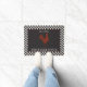 Montrez votre fierté à votre porte d'entrée avec ce tapis de porte en monogramme noir, rouillé et blanc avec une bordure en noir et blanc avec un coq rouge foncé au centre. Personnalisez avec votre nom de famille et l'année établie. Design par Holiday Hearts Designs (droits réservés).