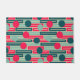 Ce tapis de portes a un design moderne du milieu du siècle de rectangles extensibles en rose, turquoise et bleu avec des cercles superposés.