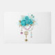 Clé d'or antique aux roses turquoise tendance décorée de feuilles d'or blanc et de perles rose et bleu. Couleur tendance. Rose turquoise. Blanc doré. Tiffany bleu.