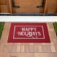 Beau mat de porte rouge avec texte blanc dans une boîte blanche. Le texte est une typographie créative qui fournit une ambiance de vacances. Vous pouvez modifier le texte en sélectionnant "Personnaliser cette conception" avant d'ajouter cet élément à votre panier. Changez-le en Joyeuses Fêtes, votre nom ou autre chose. Un nouveau tapis porte est un moyen simple d'embellir votre maison pour les vacances.
