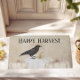 Tapis d'automne rustique avec des citrouilles blancs, un corbeau, et texte "Happy Harvest". Parfait pour les porches de ferme, la décoration d'automne et les rassemblements de Thanksgiving. Un design cosy et neutre qui fonctionne toute la saison.