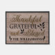 Natte customisée rustique bénie reconnaissante reconnaissante. Reconnaissant, reconnaissant et béni est l'accueil chaleureux parfait pour n'importe qui qui entre dans votre maison. Et la touche finale ajoute votre nom de famille au fond. Cette conception à la mode souple dans des tons neutres des taupes et du charbon de bois gris mous accentuera n'importe quel style à la maison et se mélangera avec votre décor.