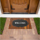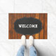Le tapis de porte d'accueil a un look de planche en bois. Cadre du tableau de bord pour votre texte. Ajoutez votre nom de famille ou tout autre texte que vous souhaitez.