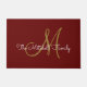 Un monogramme d'or moderne en or blanc sur un tapis de porte bordeaux, grand, pour votre entrée.