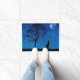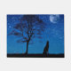 Une silhouette de loup noir hurlant à la pleine lune avec un arbre noir solitaire à côté