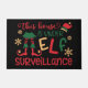 Drôle elf surveillance de noël tapis de porte de vacances sur un arrière - plan noir. Visitez notre boutique pour voir un large assortiment de tapis de portes uniques.