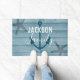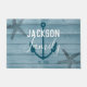 Bois bleu rustique et élégant. Poignée de timbre Starfish avec un graphique d'ancrage solide. Nom de famille personnalisé en gras sans serif police et typographie de famille de script chic. Tout le texte est réglable. Belle conception pour maison de plage, maison de vacances, bateau, ou décoration de maison à thème nautique.
