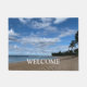 Sable doux le long de l'océan. Des vagues douces se glissent. Des palmiers soufflent doucement au loin. Un ciel rempli de nuages moelleux. Un excellent moyen d'accueillir les invités dans votre maison.