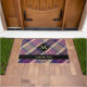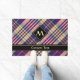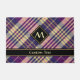 Design écossais violet, jaune doré et bleu. Motif sans couture. Texte et monogramme personnalisés.