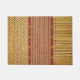 Style de l'île tropicale tiki avec des textures imitant le bambou, le roseau tressé et le rotin, avec des rayures d'icônes tiki de style polynésien en rouge, orange, marron.