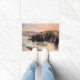 Ce dessin présente un tableau de l'artiste américain Charles M. Russell (1864-1926). Il représente un troupeau de buffles américains dans un paysage désertique. Les animaux sont rassemblés autour d'un lac ou d'une rivière, d'où ils boivent. Les bisons ont des corps gras recouverts de cheveux bruns; ils ont aussi de grandes cornes au sommet de leur tête. Le bison est le plus grand mammifère sauvage d'Amérique du Nord. Il y avait des millions de bisons qui parcouraient les prairies et les vallées des États-Unis au 19ème siècle, mais, à cause de la chasse massive, il ne reste plus que des milliers de créatures. Le bison américain est souvent utilisé en Amérique du Nord dans les phoques officiels, les drapeaux et les logos. Par exemple, en 2016, le bison américain est devenu le mammifère national des États-Unis. Cette oeuvre a été peinte par Charles Russell en 1895.
