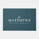 Un élégant tapis de porte de vacances photo moderne avec votre nom de famille présenté dans la typographie classique jumelé avec une police manuscrite en blanc une magnifique couleur bleu vert turquoise foncé au verso. Un design amusant et minimal pour se démarquer de la foule cette saison de noël!