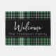 Paillasson Vert Plaid Bienvenue Monogramme Nom de famille Doo