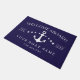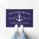 Welcome Aboard Anchor Boat Name Nautical Doormat. Set sail in style with this nautical-themed "Welcome Aboard" doormat. Featuring a classic white anchor design set against a deep navy blue background, this doormat is perfect for any boat owner. It's an ideal way to greet guests and showcase your maritime pride. Make every arrival feel like a grand homecoming with this charming and personalized addition to your boat.