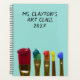 Spiral gebunden Jahr lang Planer für diejenigen, die Kunst und Malerei lehren. Pinsel mit Farbe schmücken das blaue Cover mit schwarz bedrucktem Schriftart an der Spitze für einen Titel, den Namen des Lehrers und das Jahr. Dieser Planer ist nützlich für jeden Künstler, der organisiert behalten werden muss.