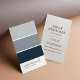 Klug entworfene vertikale Visitenkarten imitieren das Aussehen einer Lackchipkarte, mit drei Rechtecken in ombre Farbnuancen von marineblau und grau. Personalisieren Sie die Vorderseite mit Ihrem Namen und Titel, Beruf oder Firmennamen, und fügen Sie Ihre vollständigen Kontaktinformationen auf der Rückseite hinzu. Eine schicke Wahl für Innenarchitekten, Dekorateure und Maler. Um die Farbe der Farbchips zu ändern, klicken Sie auf "Anpassen" und wählen eine neue Hintergrundfarbe aus der Palette aus, oder geben Sie einen benutzerdefinierten Hex-Code ein. Farben werden automatisch in drei aufeinander abgestimmten Farbtönen aktualisiert.