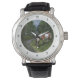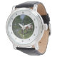 Uhr, Vintage Männeruhr mit schwarzem Lederarmband