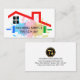 Cover verfügt über eine Zuhause, die überall Spritzer lackieren kann. Zwischen den Walzenbürsten liegt der Firmenname "PINTING SERVICE", den Sie ändern können, und die Kontaktdaten. Hinter einem weißen Cover befindet sich oben ein goldenes Pinsellogo, gefolgt von Ihrem angesehenen Namen und den Kontaktdaten. Eine tolle Karte für Maler.