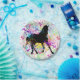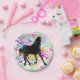 Schwarzes Pferd, umgeben von farbenfrohen Spritzern