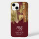 Whimsical Abstrakt Gold Red und Bronze Paint Strokes iPhone 14 Fall mit einer weißen benutzerdefinierten Monogramm Vorlage. Für eine zusätzliche persönliche Touch fügen Sie Ihren Vor- und Nachnamen in die Vorlage ein. Gönnen Sie sich einen durchdachten personalisierten iPhone-Kasten als Geschenk für Muttertag, Geburtstag, Abschluss, etc. Personalisierte Monogram Initial Letter iPhone Cover mit geometrischen Elementen.