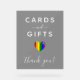 Akryllisches LGBTQ Hochzeitszeichen für Ihre Karten und Geschenktische mit einem Regenbogenherz auf einem transparenten schwarzen Hintergrund. Akryllische Geschenke & Karten Zeichen mit einem Stolz für eine schwule Hochzeit oder lesbische Hochzeit.