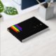 Schwarz und Regenbogen LGBTQ Hochzeitsgast-Buch mit Regenbogenflagge gezeichnet mit chaotischen Strichen und vergoldetem Text auf schwarzem Hintergrund. Gay Hochzeitsgast-Buch in schwarz mit Pinselstrichen aus Regenbogen und eigenem Goldfolientext. Lesbisches Hochzeitsguestbook mit goldenem Text und regenbogenfarbenen Pinselstrichen. Mr. & Mr. in Goldfolie, die für eine lesbische Hochzeit leicht zu Frau & Frau gewechselt werden kann.
