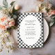 Your custom wedding details appear at the center in black lettering against a oval shaped frame with my painted black and white checkerboard pattern in the background. The painted black squares give this a soft and pretty look. The reverse side is a plain white.