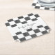 Add a personalized touch to cocktail hours and more with these custom coasters. The paper coasters have a black and white checkerboard background featuring painted black squares. They are ready to be personalized with names and wedding date.