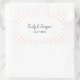 Decorate wedding party favors with these personalized stickers. They feature your names and your wedding date in black lettering in a white oval frame that's sent against a painted checkerboard pattern in pretty pastel pink and white.