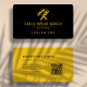 Help your painting business stand out from the crowd with this bold, eye-catching black and yellow business card featuring rounded corners. On the front of the card, the black background contrasts with the yellow crossed paint roller and paint brush logo and the yellow text to highlight your business name and contact information. On the back, the colors are reversed, with black text on a yellow background. A QR code takes customers and clients to your website.