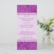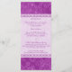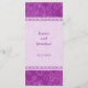 Des tourbillons et des fleurs en violet vif font un motif magnifique pour cette carte de menu mariage. Le texte customisé s'imprime sur un panneau lumineux accentué par des bordures faisant écho au motif arrière - plan. Un joli ajout à n'importe quel mariage. Utilisez-le comme menu ou tout autre imprimé dont vous pourriez avoir besoin pour votre mariage, douche ou fête d'engagement. Customisez-le avec votre propre menu ou d'autres informations sur le devant et ajoutez votre nom et la date de l'événement ou des informations supplémentaires sur le menu au dos contre le même motif. Disponible en couleurs alternatives avec produits correspondants. com
