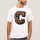 Ein fett vektor grafisches Monogramm-Design mit einem paisley-Stil 3d-Effekt-Schriftart in schwarz mit Orange überzogen.