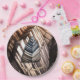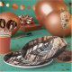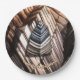 Der perfekte Teller für ein Picknick mit Paleo-Diät. High-Tech-Waffen aus dem Pleistozän. Zwei erdgetönte 3D-Fraktal-Aufnahmen, die beide auf den gleichen Formeln basieren und beide leicht verändert wurden, kombiniert um einen primitiven Speerpunkt aus der Eiszeit oder eine Pfeilspitze zu zeigen, die auf einer felsigen Oberfläche überlagert wird. Fügen Sie Ihren eigenen Text hinzu.